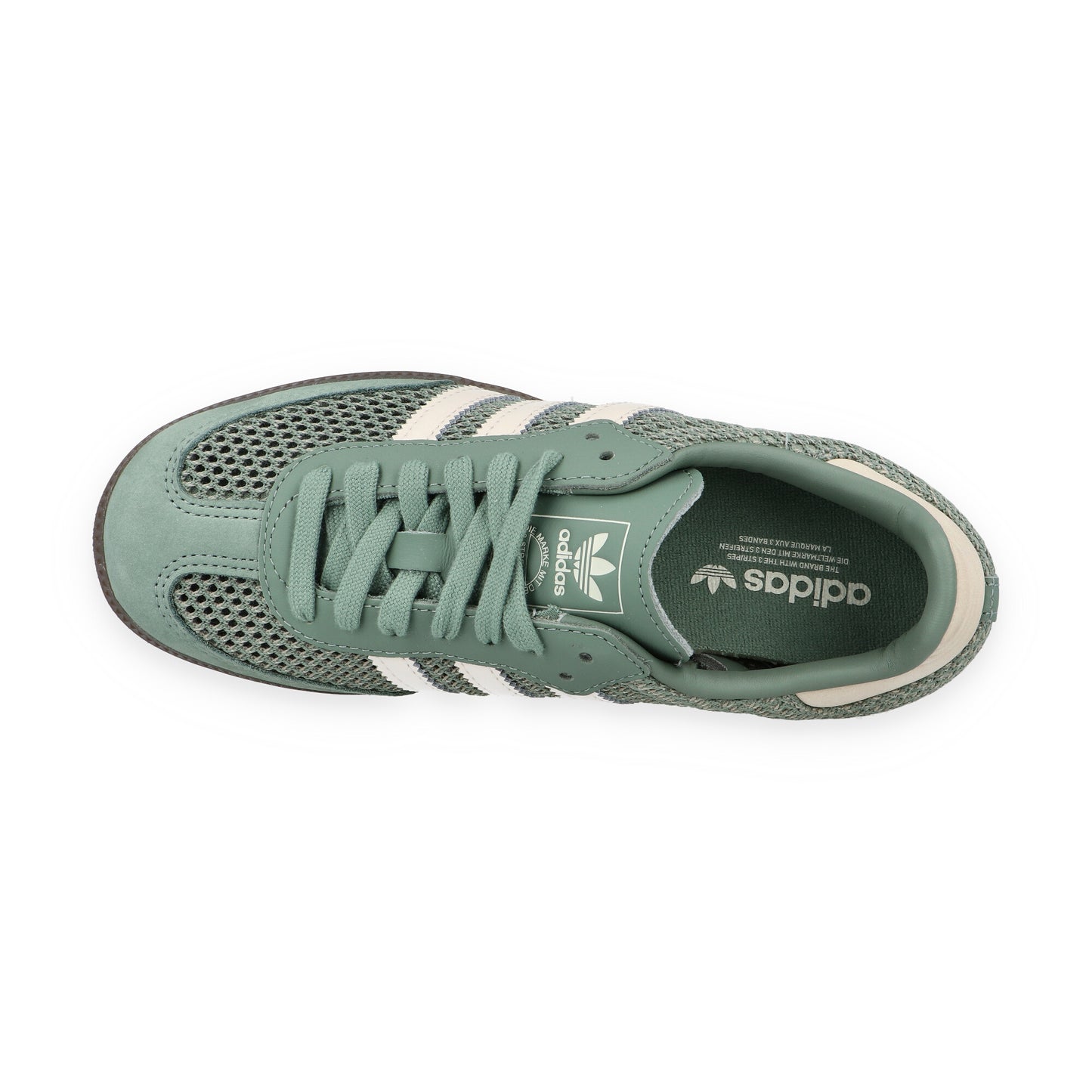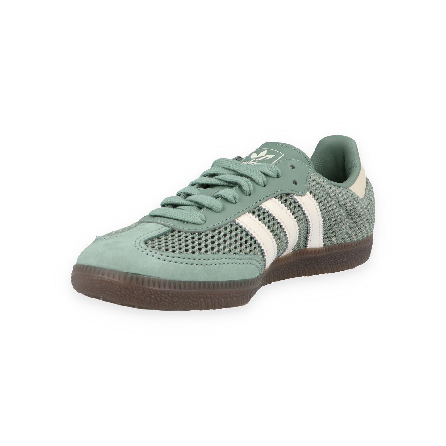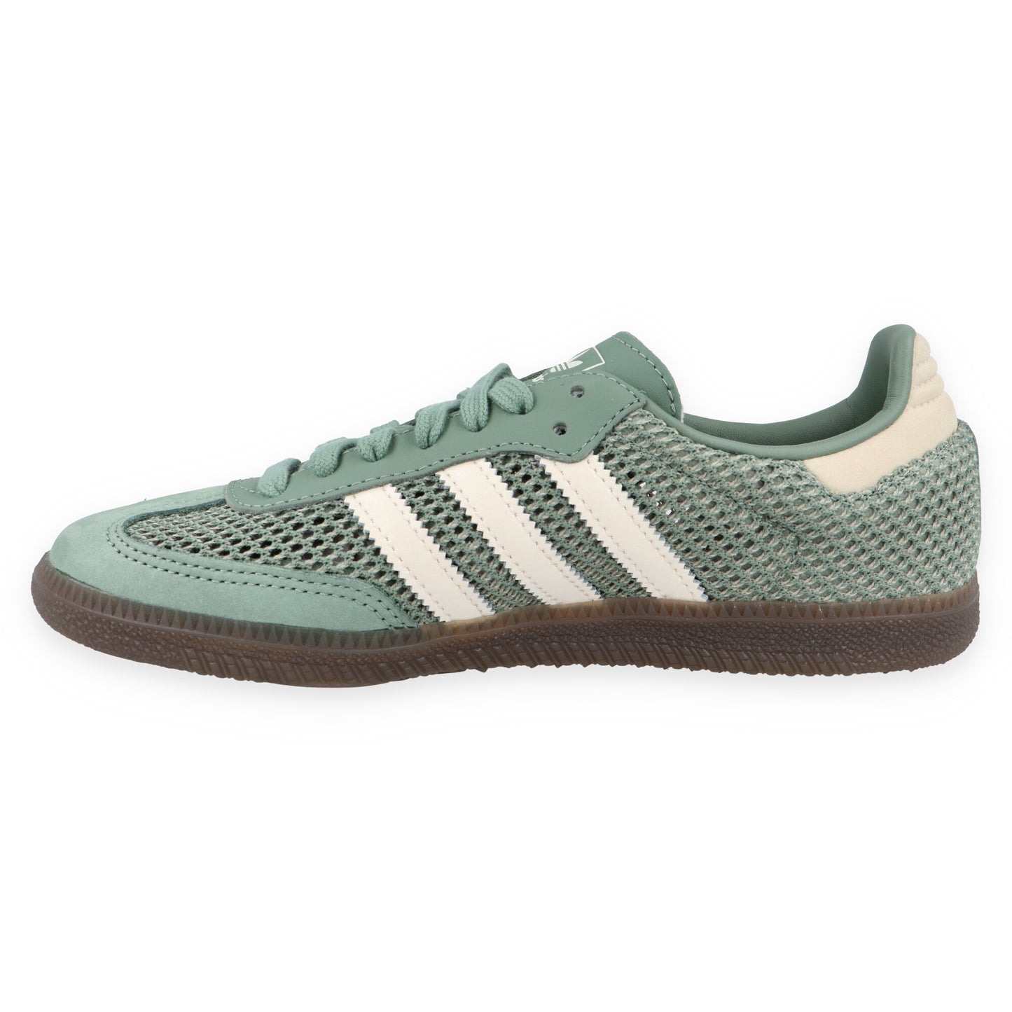 Der adidas Samba OG W Silver Green bringt frischen Wind in den zeitlosen Samba-Klassiker. Dieser Damen-Sneaker in Patina- bzw. Salbeigrün mit cremeweißen Streifen und Details setzt auf atmungsaktives, offenporiges Textilmesh, das luftig und grobmaschig gehäkelt ist, um eine maximale Luftzirkulation zu gewährleisten. Das durchscheinende Material ist ideal für luftige Füße an warmen Tagen oder um stylische Akzente zu setzen, wenn du die richtigen Socken dazu trägst. Die Kombination aus Textil, Leder und Wildleder sorgt für eine Premium-Haptik und Langlebigkeit, während die gezackten 3-Streifen und das Trefoil-Logo auf der Zunge für adidas-Authentizität garantieren.
