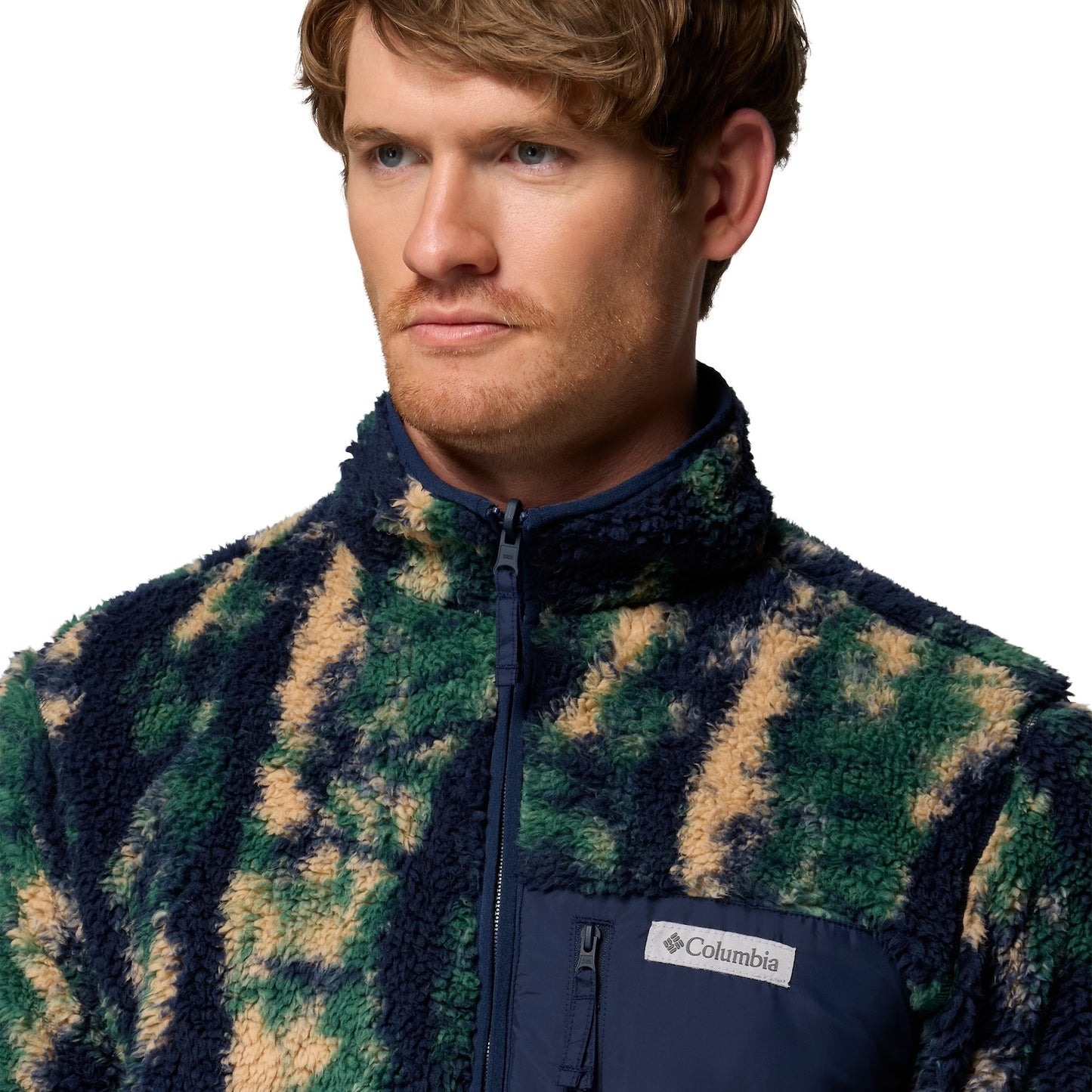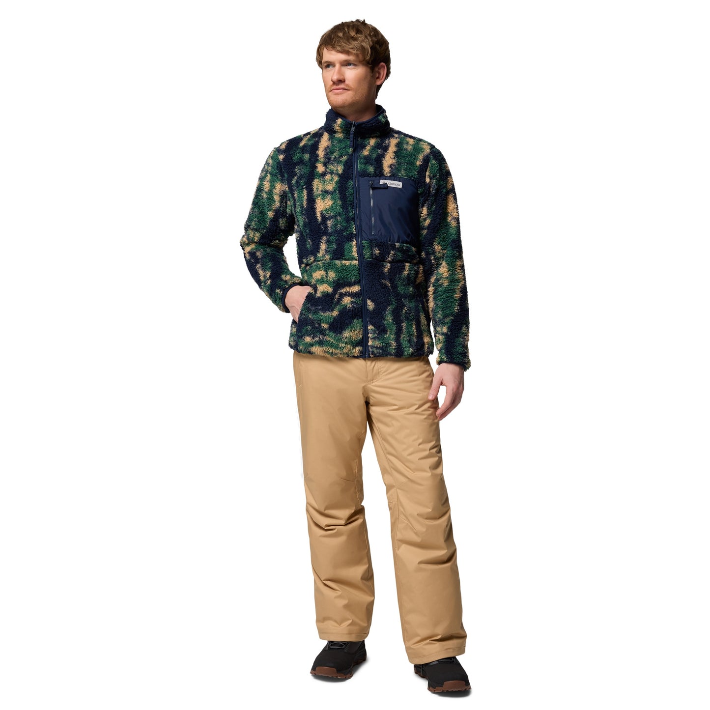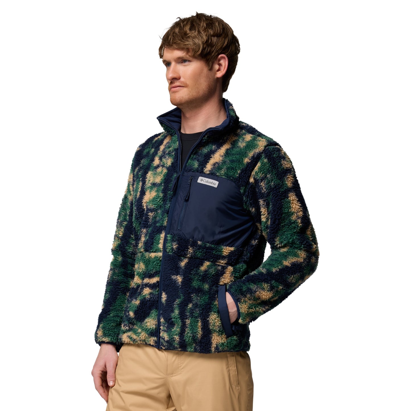 Die Columbia Winter Pass Reversible Sherpa Fleecejacke Navy bietet dir Abwechslung und Komfort ohne Kompromisse: Außen dunkelblaues Sherpa-Fleece mit grünen und beigen Flecken, innen glattes Microfleece in Navy-Blau - dank des Wendedesigns kannst du die Jacke je nach Laune drehen. Der durchgehende Reißverschluss erleichtert das Zwiebelprinzip, elastische Bündchen sorgen für einen bequemen Sitz und die Reißverschlusstaschen an Brust und Seiten halten wichtige Dinge sicher am Platz.